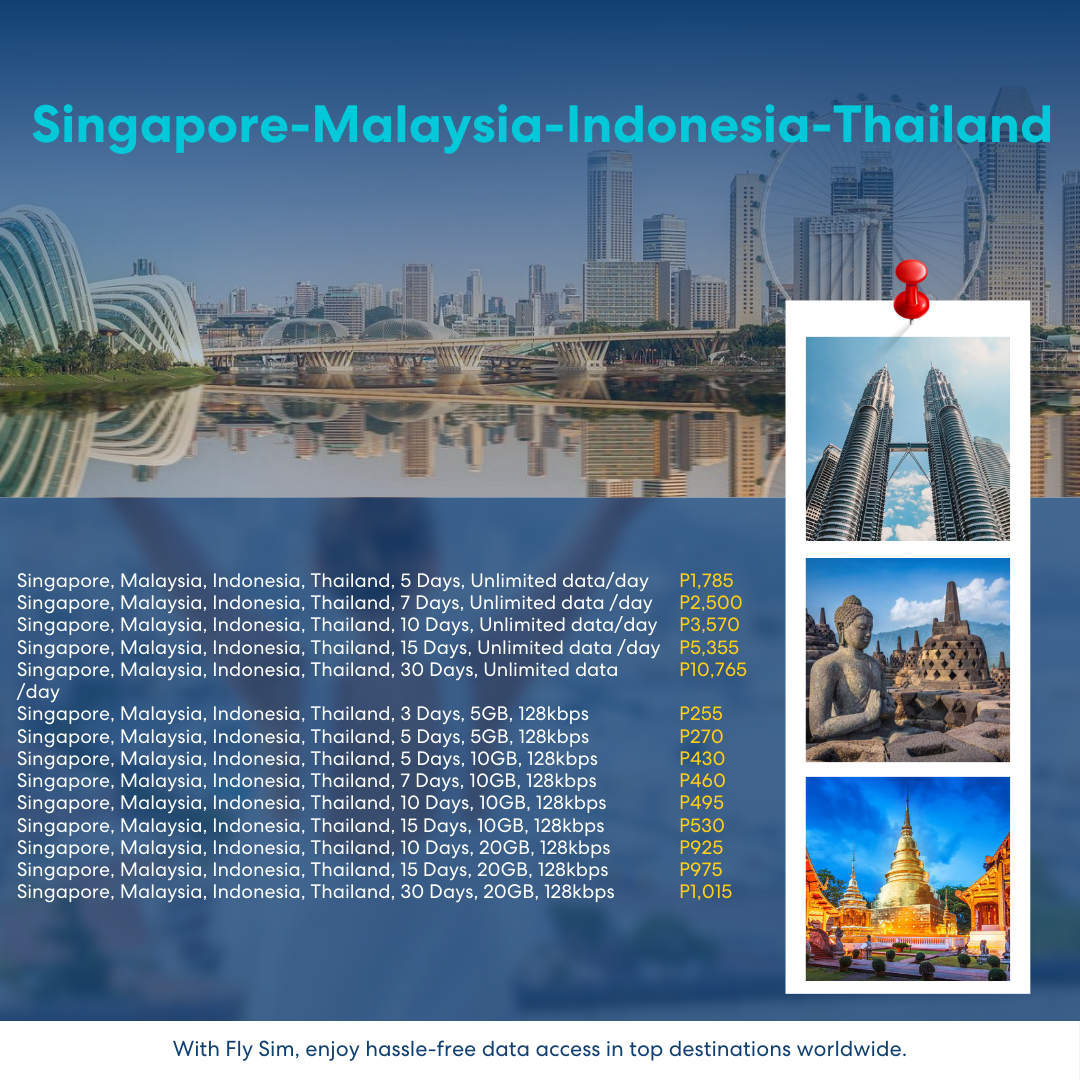 Fly eSIM – Singapore, Malaysia, Indonesia and Thailand Travel Data eSIM / International eSIM, No Roaming Fees (Email Delivery)